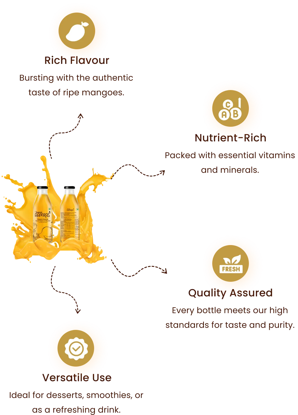 Delight in Aamrai's finest Aamras (mango pulp) and embark on a sensory expedition that reveres the rich tradition and flavour of Indian mangoes. Buy Aamras online today and relish the magic of Aamrai's Aamras bottle, delivered straight to you.