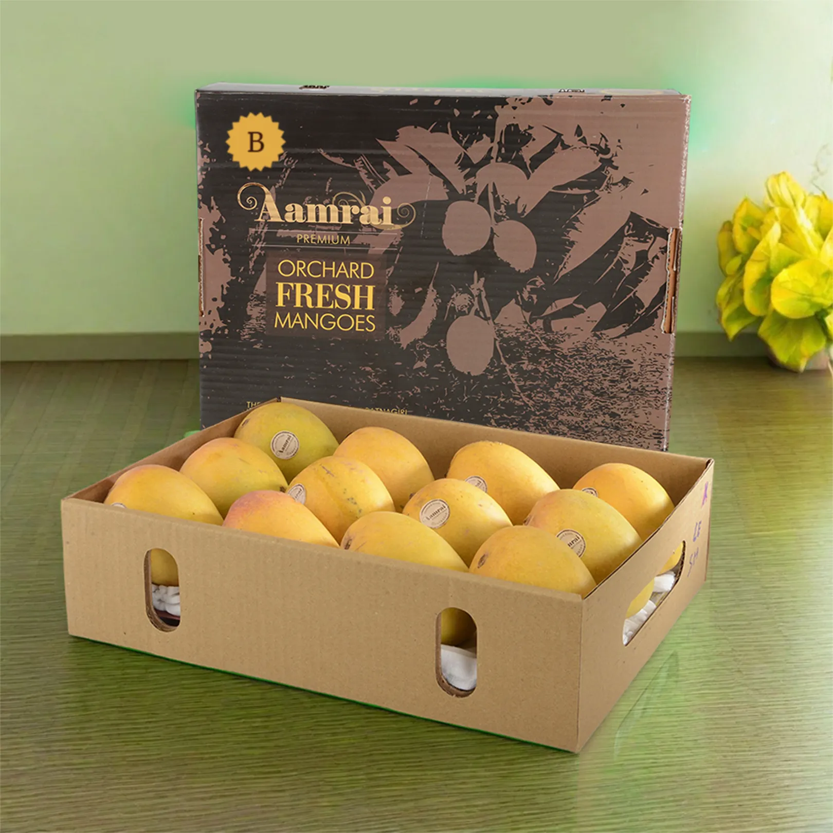 • Premium export quality packaging: The best Alphonso mangoes are packed in our customized, export quality, 6 ply top bottom boxes. They are enclosed in sleeves to prevent bruising or damage during transportation and adequate ventilation is provided in both primary and secondary packaging.