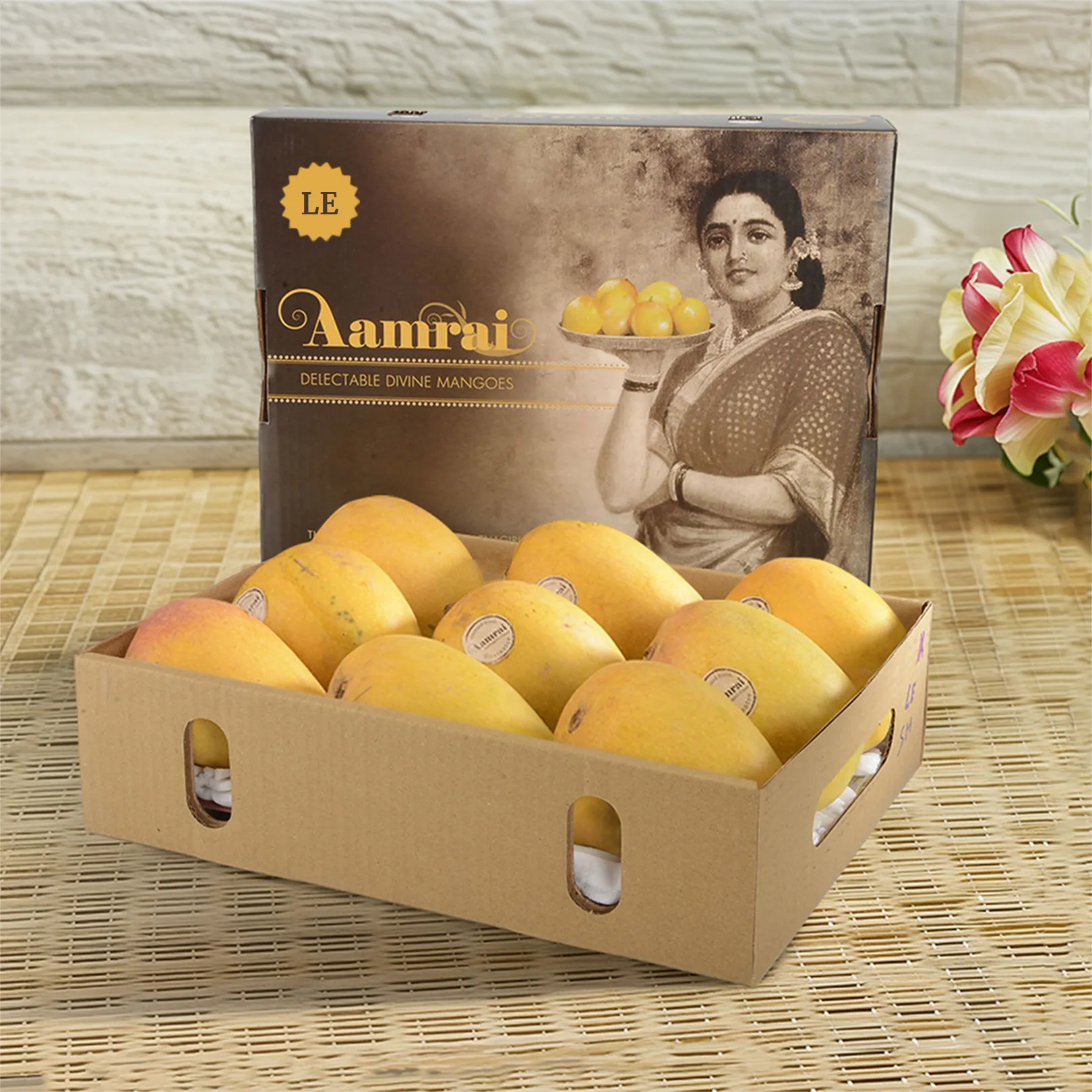 Our gifting box picture is taken from a late 18th century Ravi Varma painting to bring out the premium quality of Aamrai Alphonso mango gift boxes.Â