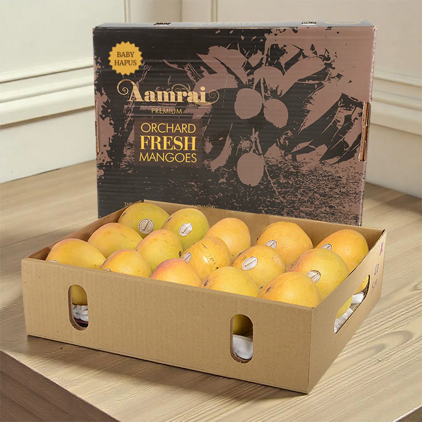 The best Alphonso mangoes are packed in our customized, export quality, 6 ply top bottom boxes. They are enclosed in sleeves to prevent bruising or damage during transportation and adequate ventilation is provided in both primary and secondary packaging. For outstation orders outside Mumbai our customised proprietary ventilated packaging ensures that your mangoes reach you safely.